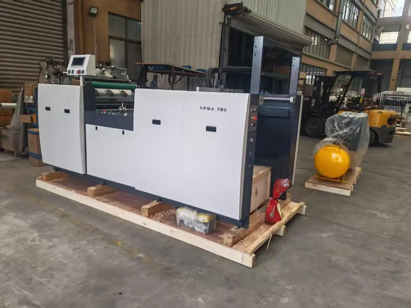 Pakuojame YFMA-760Automatinė išankstinio dengimo laminavimo mašina, Galiausiai jis bus supakuotas į medinę dėžę.